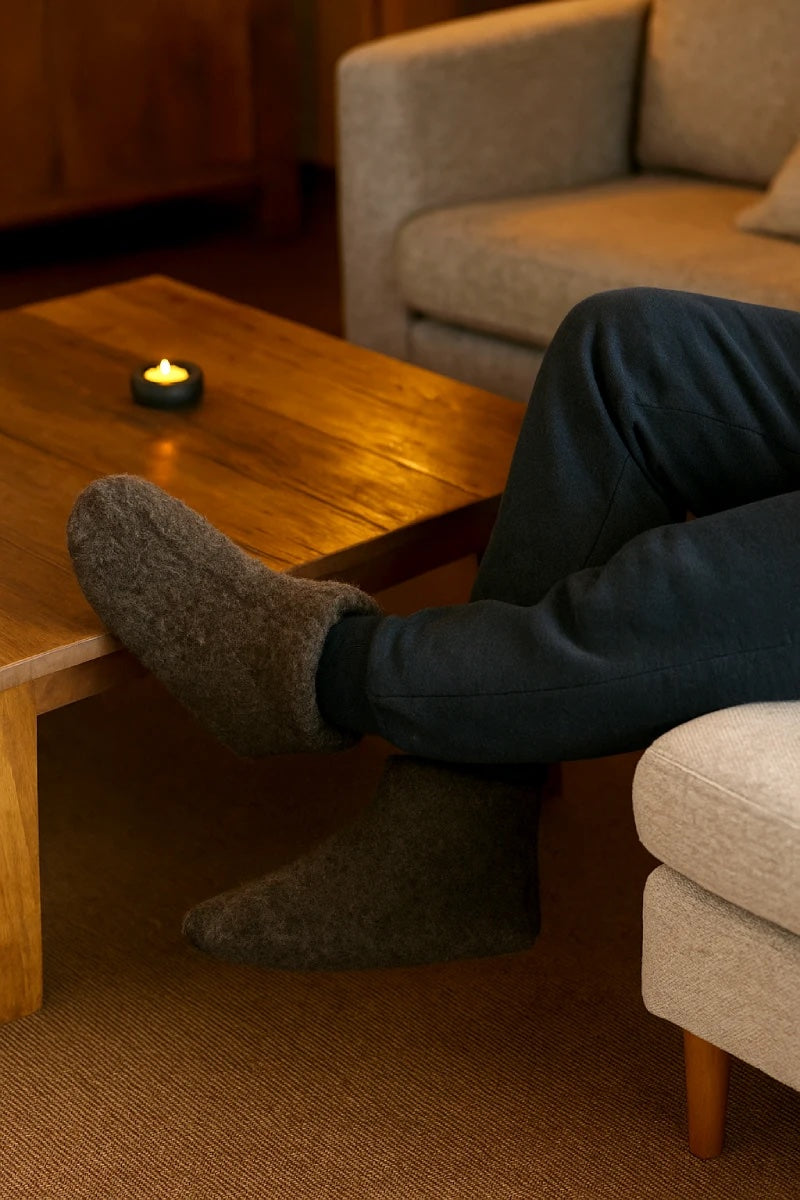 Tofflor handlar inte om pynt – det handlar om funktion, komfort och hållbarhet. Därför har vi utvecklat en kollektion av ulltofflor som uppfyller just dessa behov. Här får du en kombination av beprövade naturmaterial, gediget hantverk och en enkel, stilren design som passar den moderna mannen. Oavsett om du börjar dagen med tidningen och en kopp kaffe, eller vill koppla av efter en lång arbetsdag, ger dessa tofflor dig den värme och ro du behöver.
