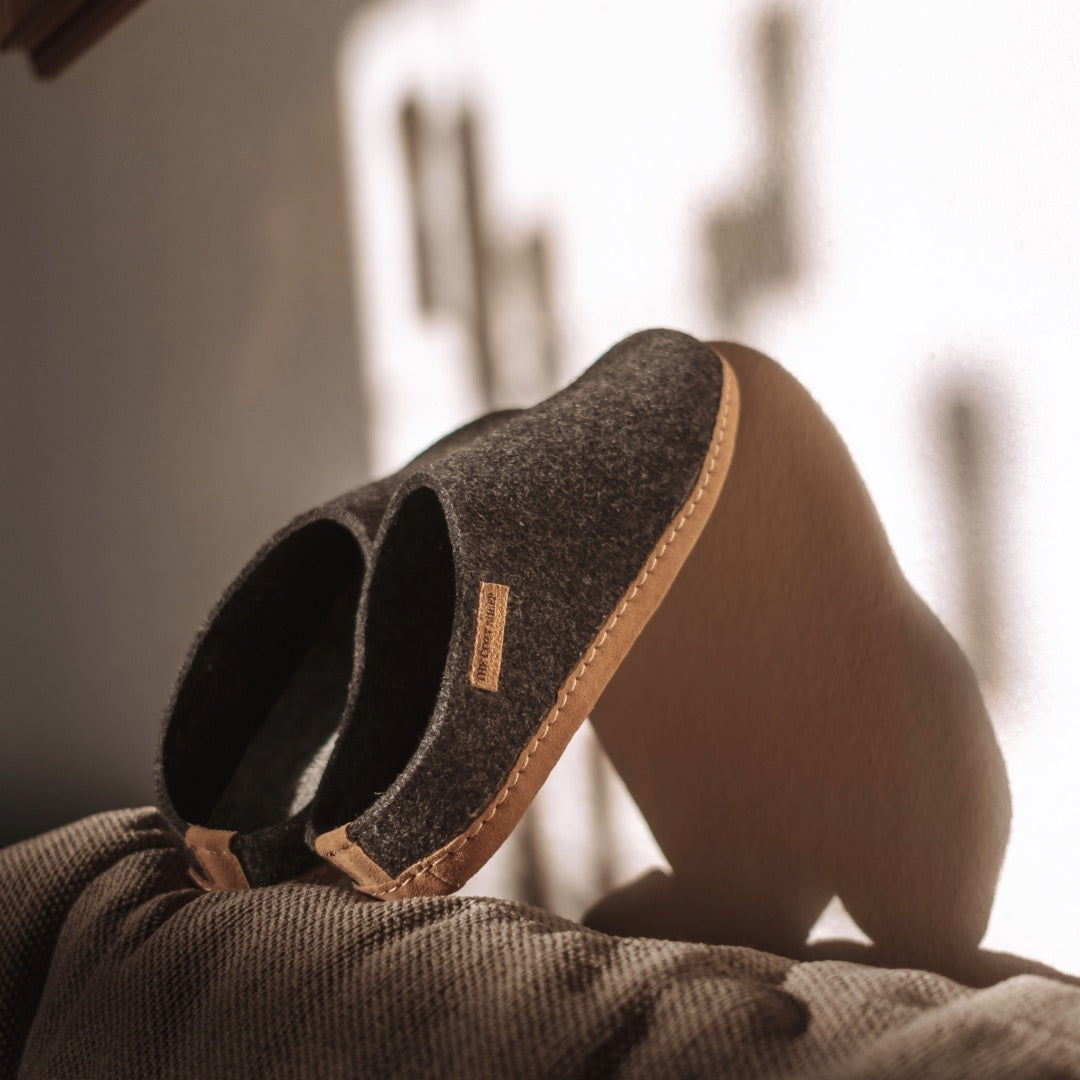 Med en enkel och tidlös skandinavisk design passar våra lyxiga filtplattor perfekt in i vilket hem som helst, oavsett stil. Denna modell har en mycket lätt och elegant mockasula, tillverkad av ekologisk läder av hög kvalitet. Tofflorna är extremt bekväma att ha på sig och reglerar också temperaturen, vilket innebär att de kan användas året runt - inte bara när det är kallt ute.