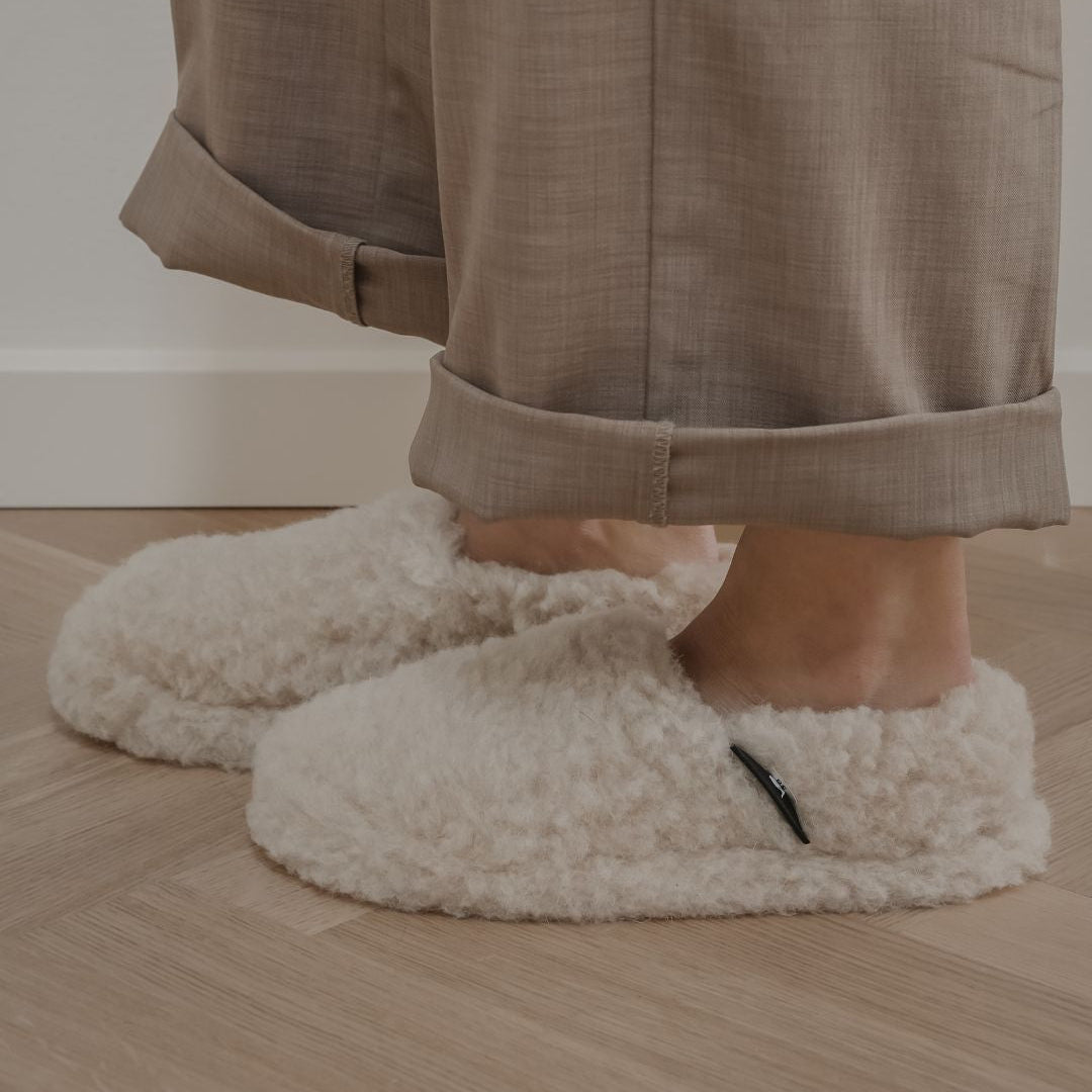Tofflor i 100% mjuk och kli-fri ekologisk merinoull