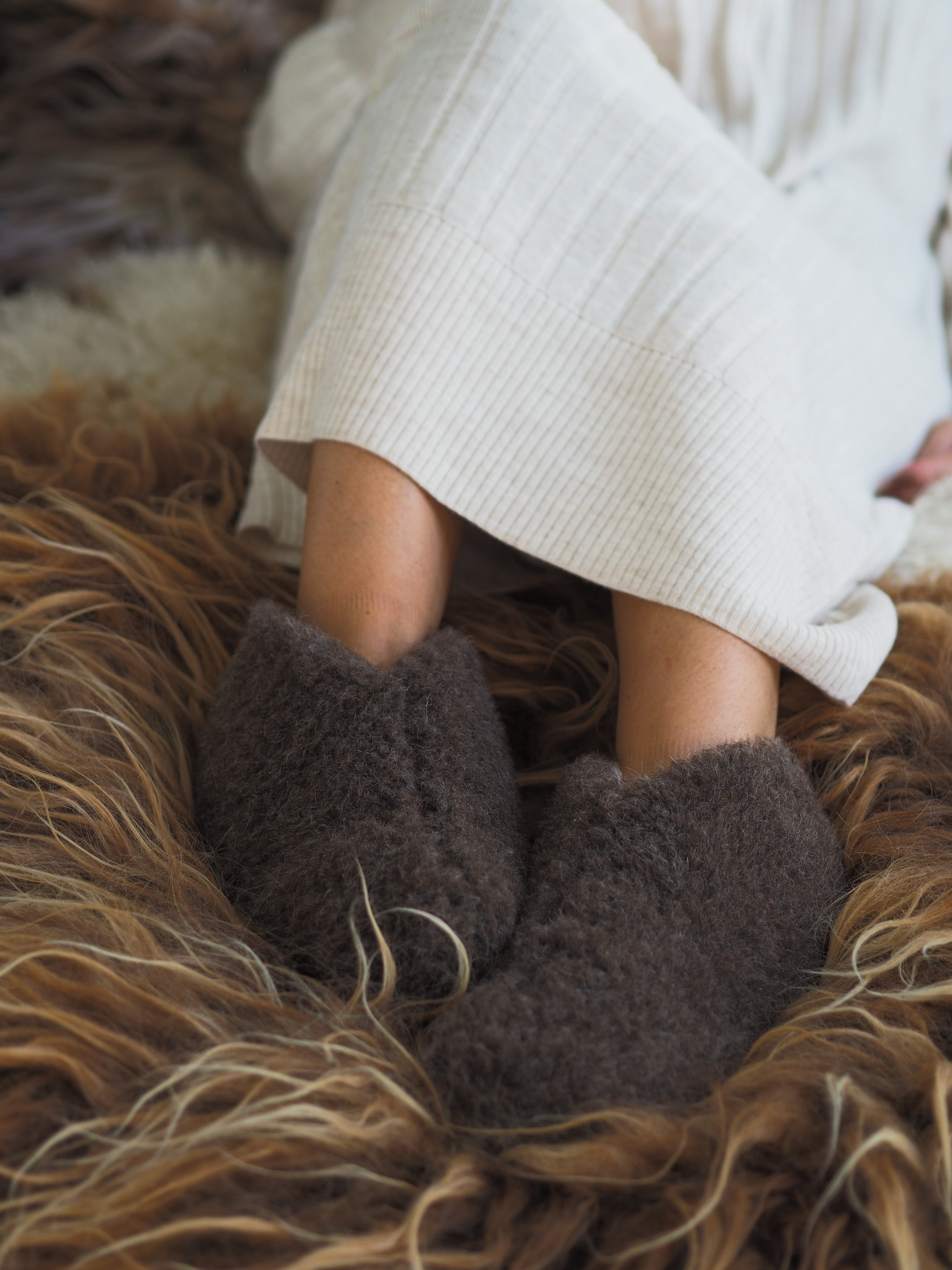 Mjuka tofflor gjorda av 100% ren och kli-fri ekologisk merinoull